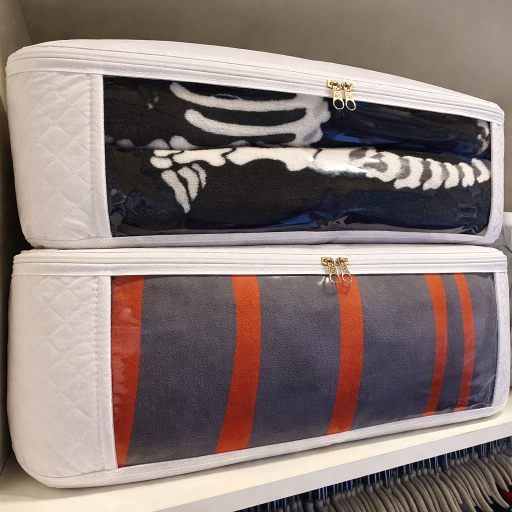 Sugestões de uso: Guarda e jogo de lençol casal, jogo de toalhas, blusas de lã e acessórios de inverno, cobertor infantil, edredom de berço etc.